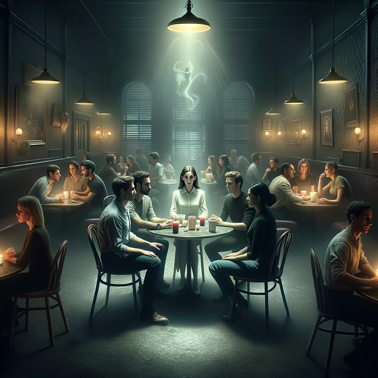 Scene: Enoch, in his mortal guise, enters a bustling marketplace needing to gather information about a recent supernatural occurrence. He wishes to approach a group of locals without arousing suspicion.
