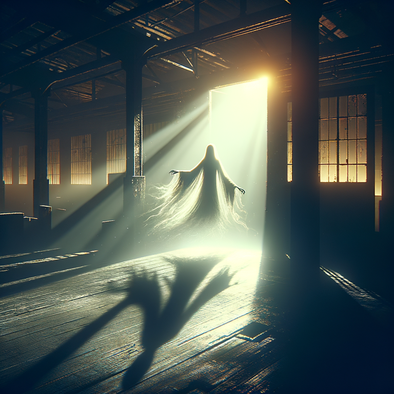 Scene: Belial is trying to deceive a group of mortal guards by creating an illusion of a ghostly figure walking towards them in a dark alleyway.