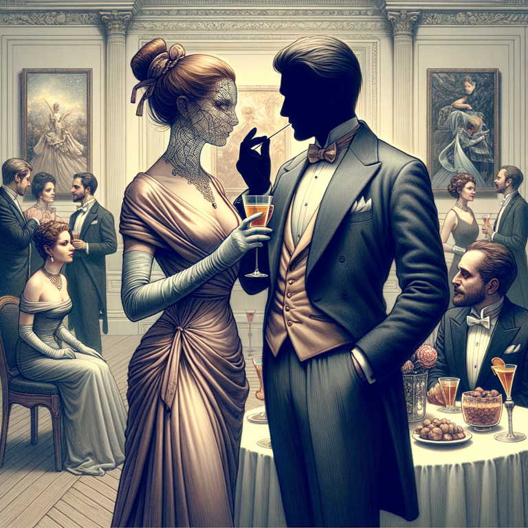 Scene: Asmodea is at a corporate cocktail party, engaging in a conversation with James, a junior executive who has been secretly despising his manipulative superior.