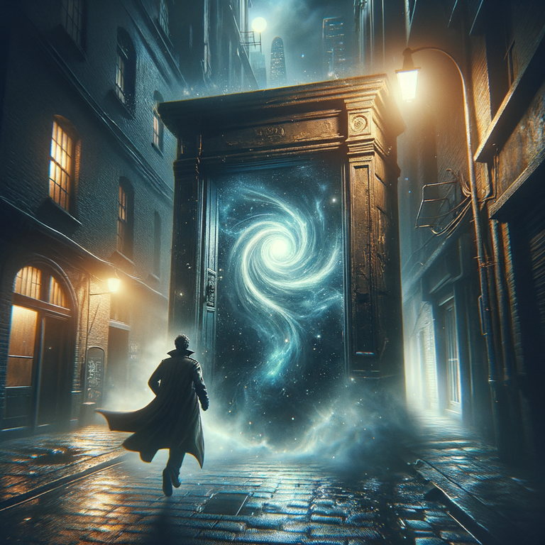 Scene: Baaliel stands at the back entrance of an abandoned warehouse, desperately trying to create an escape route for his allies trapped inside by rival demon hunters. He aims to connect the warehouse door to a hidden alleyway he knows intimately.