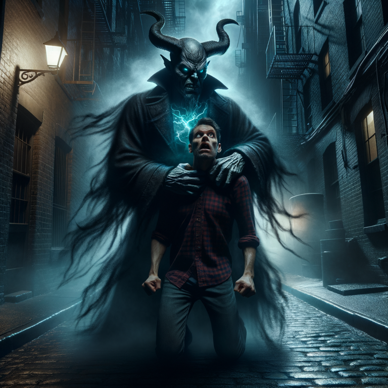 Scene: In a dimly lit alleyway, Malachai corners a rival demon named Azazel. Knowing Azazel's true name, Malachai places his hand on Azazel’s shoulder and utters, “Let every man give him shelter no matter where he travels.”