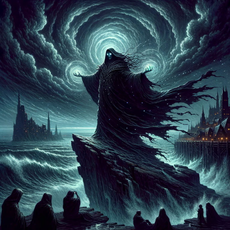 Scene: Azazel, a fallen demon now masquerading as a meteorologist named Dr. Elias Krieg, stands on a cliff overlooking a coastal city. A minor rainstorm looms on the horizon, threatening to dampen the plans of a local cult ceremony Azazel wants to observe. Determined to keep the night clear, Azazel taps into his ancient power to manipulate the weather.
