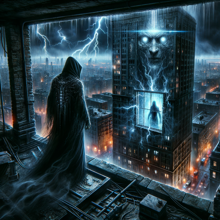 Scene: Azariel stands atop a skyscraper, looking down at the bustling city below. His fellow demon, Barakiel, is on the streets, unaware of the trap set by hunters. Azariel needs to warn Barakiel swiftly and clearly.