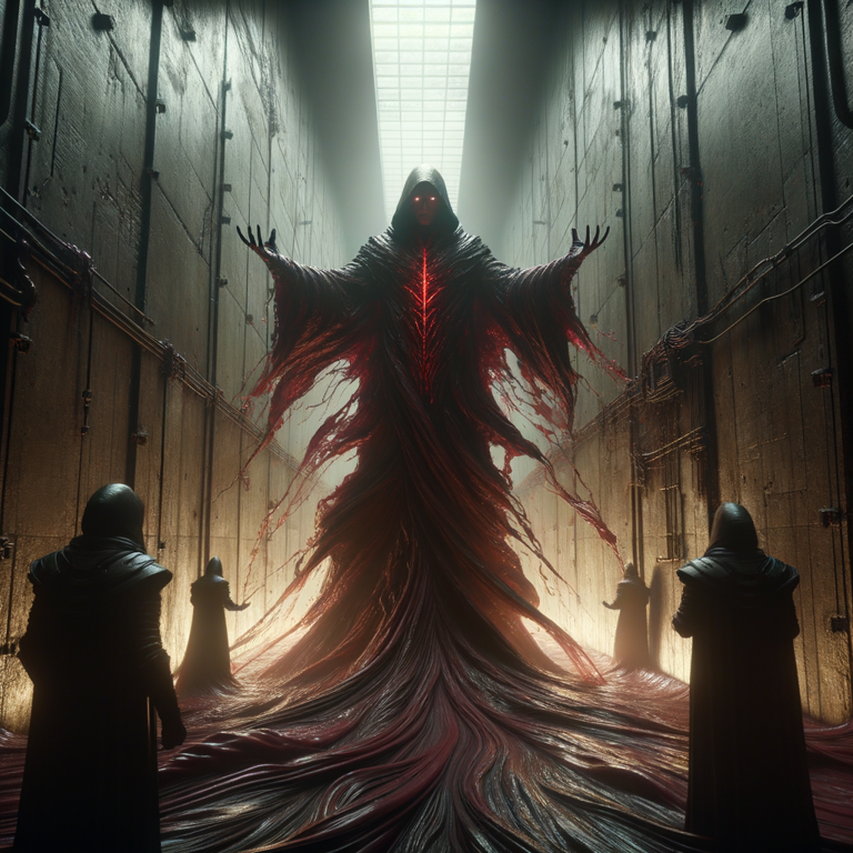 Scene: Azrael is being cornered by a group of hunters in an abandoned warehouse. The concrete flooring and walls will serve as the arena for this desperate escape attempt.