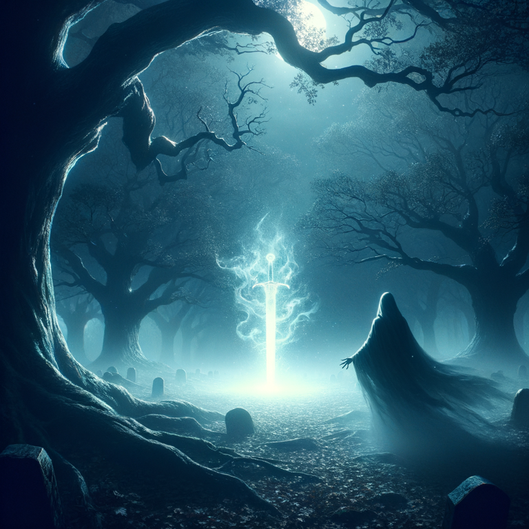 Azrael chants softly and spends one Faith point, reaching out with both hands towards the ethereal veil that shimmers before him. His hands vanish from mortal eyes as they penetrate the barrier between the worlds. After a few seconds, Azrael pulls out a rusted, yet still potent, enchanted sword that hums with a faint, otherworldly energy.